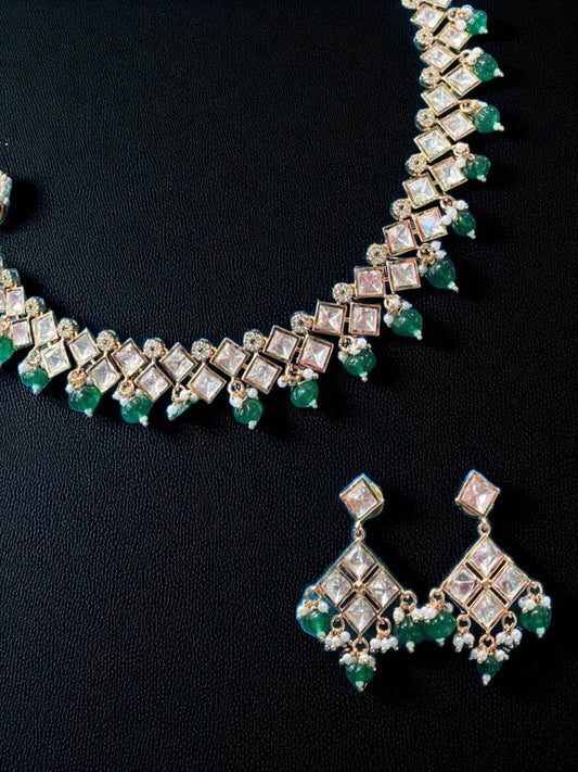 NOOR SQUARE GREEN KUNDAN JEWELLERY SET