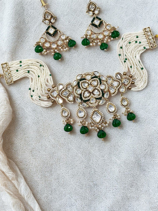 ROYAL EMERALD MULTI-LAYER KUNDAN JEWELLERY SET