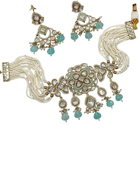 ANIRA SEA BLUE KUNDAN JEWELLERY SET