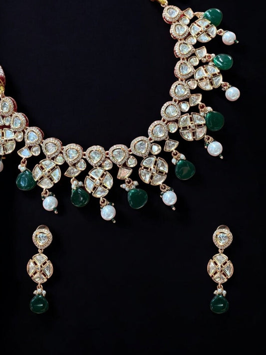 EMERALD GRANDEUR POLKI NECKLACE SET