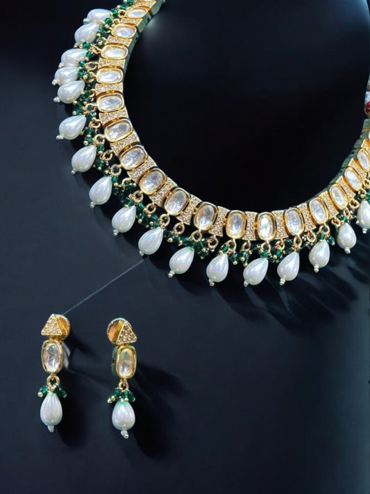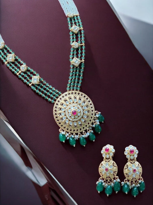 ROYAL EMERALD KUNDAN PEARL NECKLACE SET