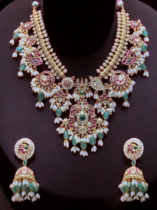 RUBY EMERALD KUNDAN PEACOCK NECKLACE SET