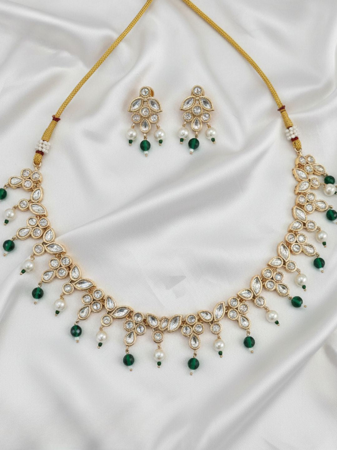 AARNA EMERALD PEARL KUNDAN NECKLACE SET
