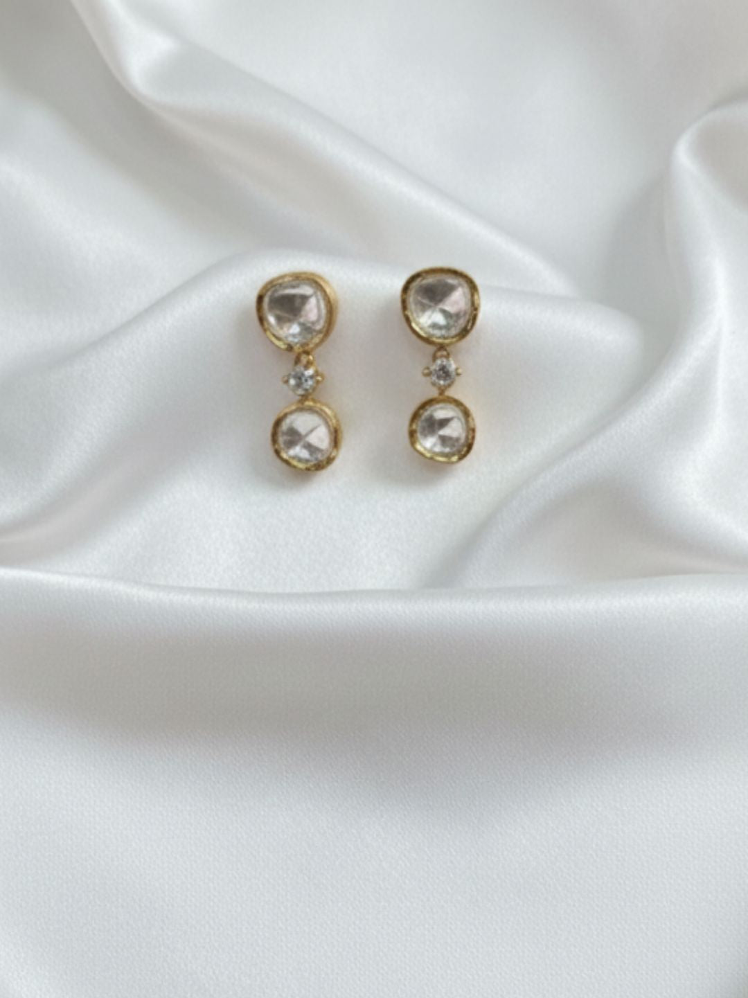 The SAVERA DOUBLE LAYER KUNDAN NECKLACE SET is a graceful blend of modern elegance and traditional charm. Designed with two beautifully layered strands of clear kundan stones, this necklace creates a refined statement without being overpowering.